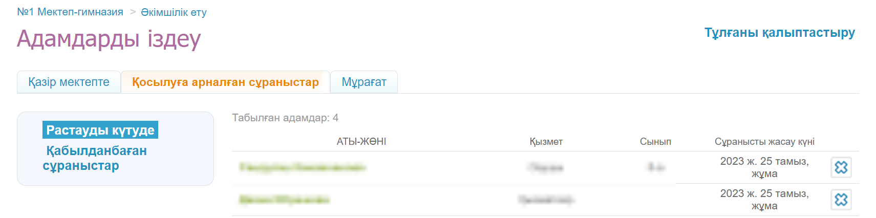 Ескерту: егер сұраныс қателіпен қабылданбаған болса, пайдаланушыға сұраныс қайта жіберілуі үшін, Білім беру ұйымының әкімшісіне жүгіну қажет.