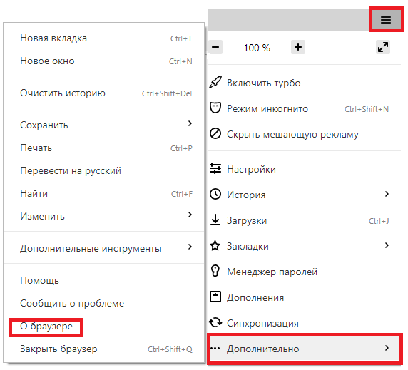 - «О браузере» батырмасын таңдау.