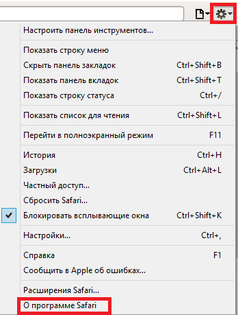 батырмасын басу; - браузердің мәзірінде «О программе Safari» батырмасын басу.