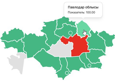Жасыл түс - таңдалған белсенділік көрсеткішін толығымен орындайтын аймақтар/аудандар;