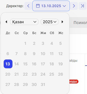 Әдепкі түрде есеп соңғы апта үшін құрастырылады (осы аптаның алдын өткен апта). Есептік кезеңге басқанда, аптаны немесе күнді таңдауға арналған есеп құрастыру үшін күнтізбе ашылады.