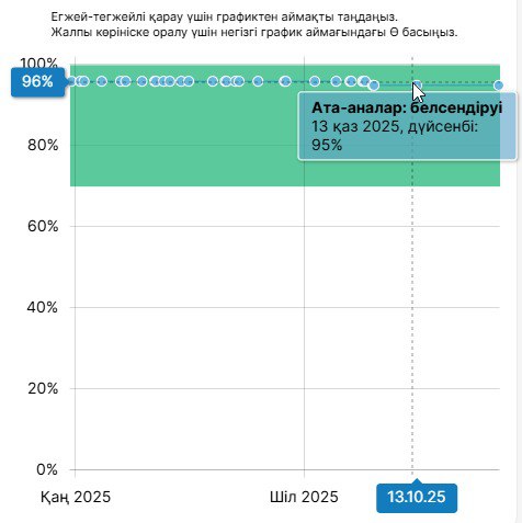 Kundelik.kz жұйесінде жұмыс белсенділігін бақылау білім беру ұйымдарының электрондық журналды жүргізу сапасын айқын көрсетеді.