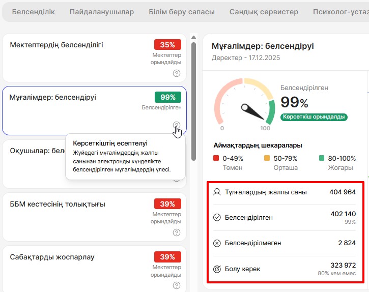 - Белсендірілген - мектептегі белсенді мұғалімдер саны.