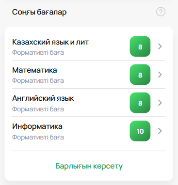 Соңғы бағалар және сыныптастармен салыстыру