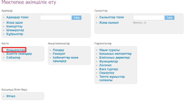 Ескерту: егер сынып қоңырау кестесін өзгертсе, сынып параметрлерінде тек бір кестені көрсетуге болады. Сыныптағы қоңыраулар кестесін өзгерткен кезде, ол осы сыныптың барлық 4 тоқсанында өзгереді.