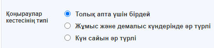 - Қоңыраулар кестесінің типі - кесте түрін таңдау үшін қолданылады.