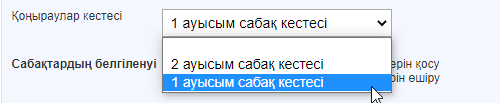- Сабақтардың белгіленуі - кестені қай сабақтан бастау керектігін көрсету үшін қолданылады.