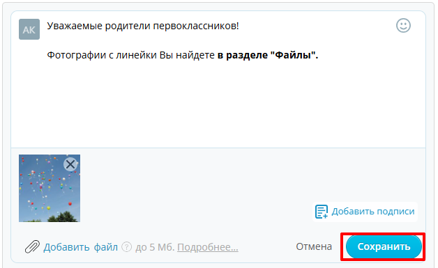 - Классный руководитель может модерировать объявления класса, объявления для родителей класса и объявления для сотрудников класса.