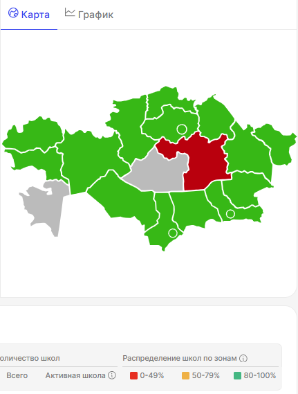 Мониторинг активности работы школ в Kundelik.kz - динамическая страница для просмотра показателей активности общеобразовательных государственных и частных организаций Республики Казахстан: начальные, средние, общеобразовательные, специализированные школы, школы-лицеи, школы-гимназии и т.д. (далее - ОО).