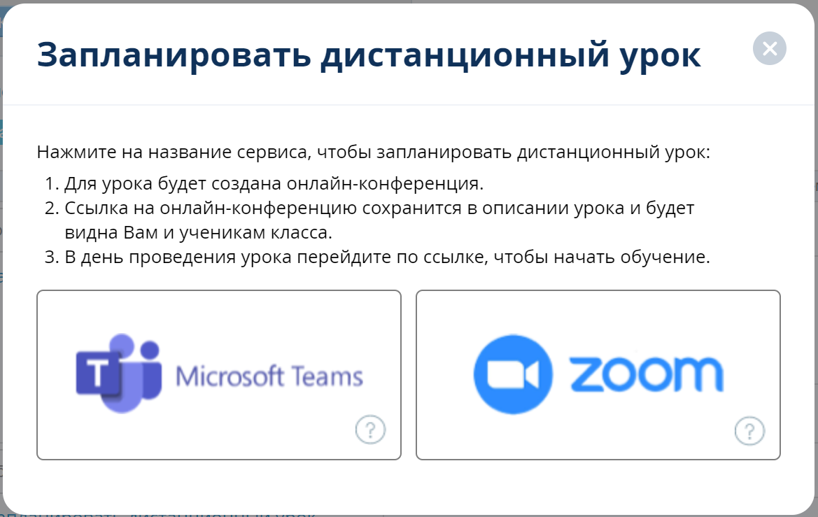 - нажмите на ссылку «Запланировать онлайн видеоурок» напротив урока, для которого хотите создать конференцию. Kundelik отобразит окно с сервисами видеоконференций.