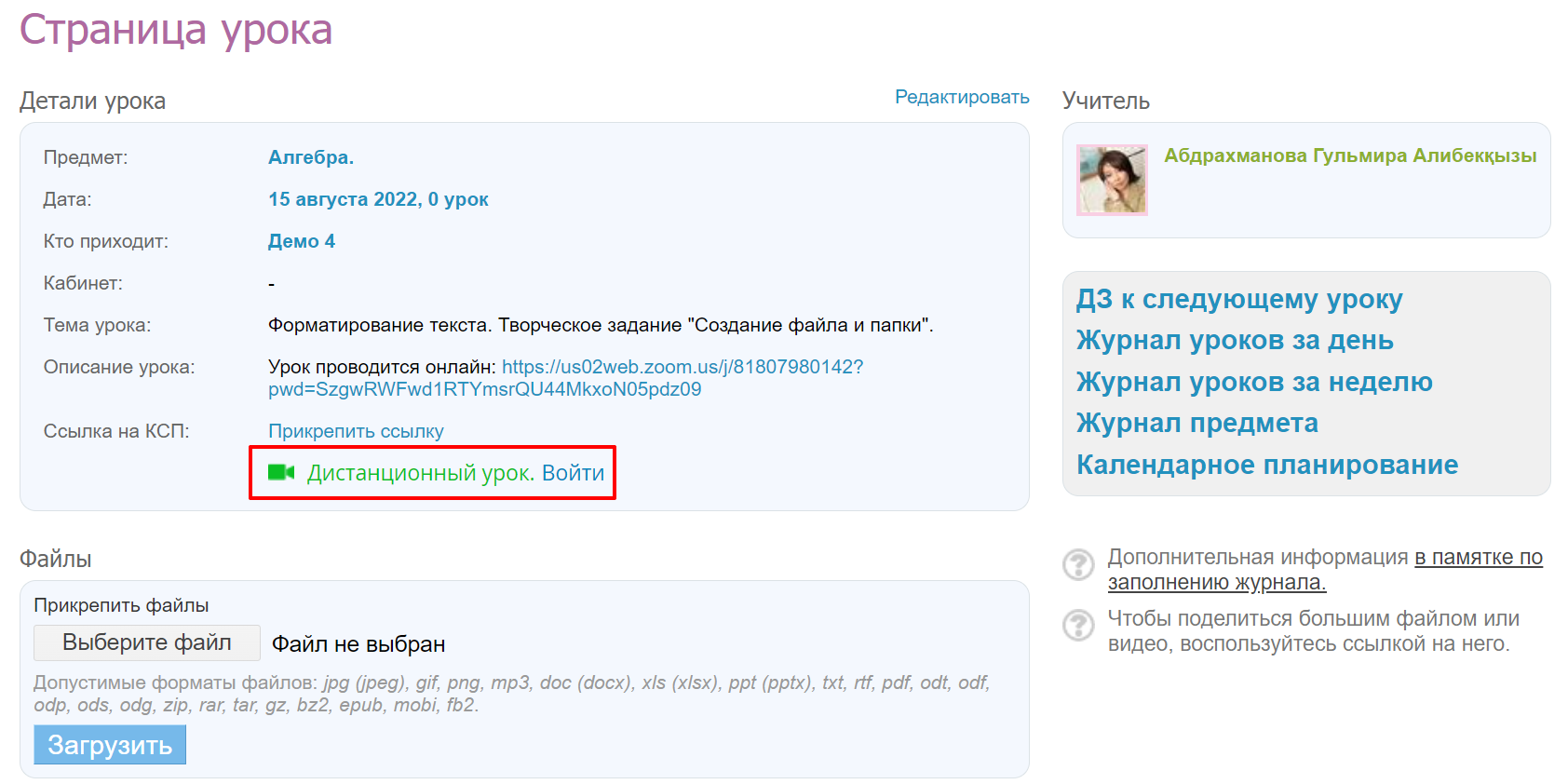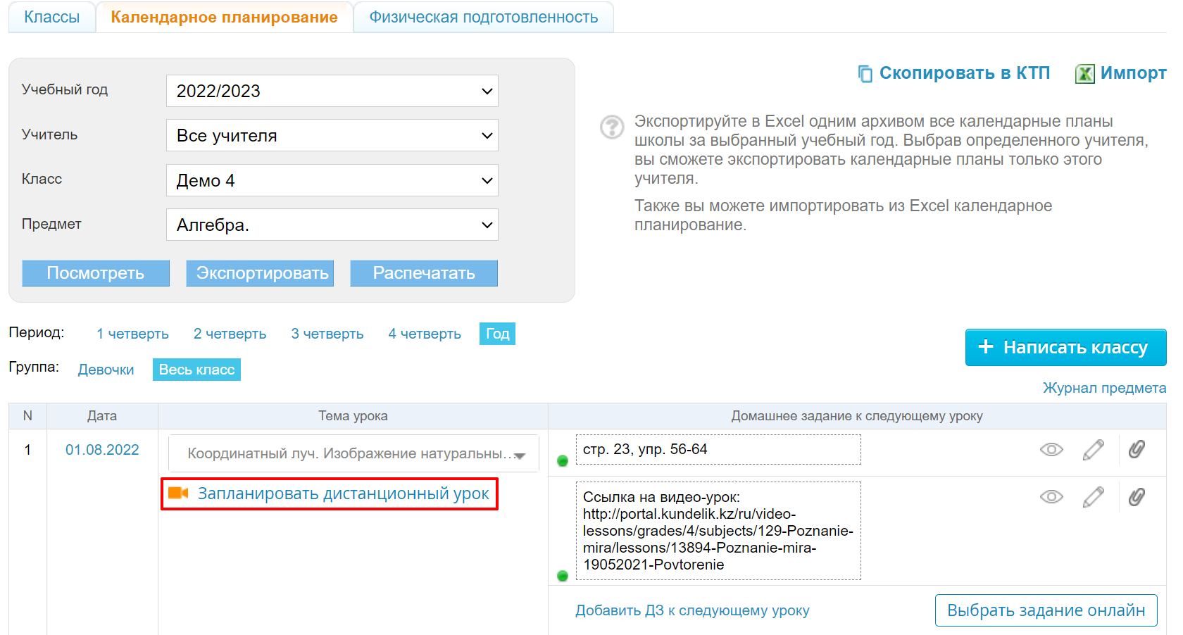 Для создания онлайн видеоуроков с помощью Kundelik.Conference выполните следующие действия: